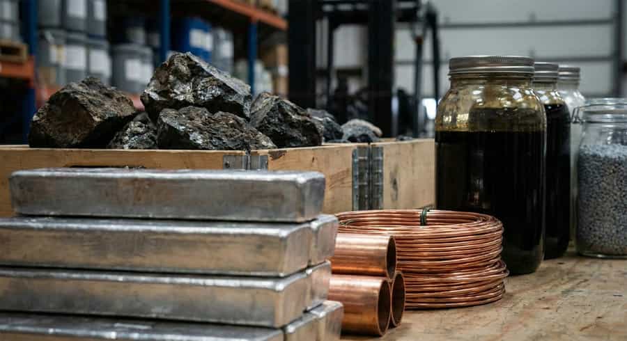 Industrial metals (e.g. silver, copper), rare earths, oil derivatives.